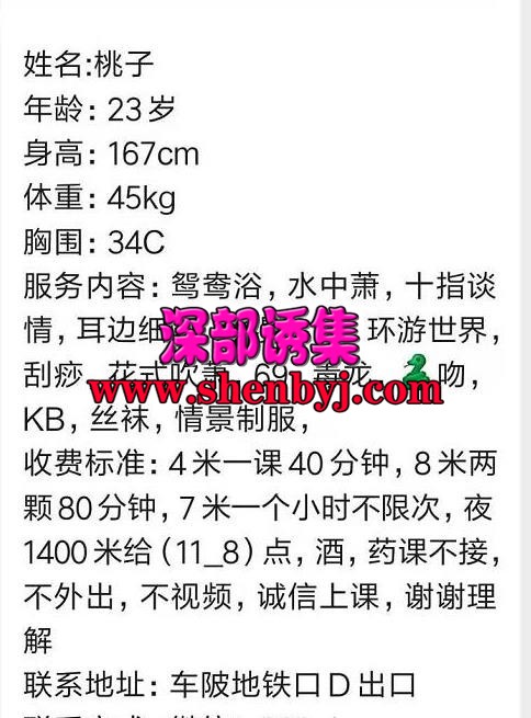 先找她拿课表,然后到附近之后她会教你怎么走,是自己租的小房子,基本服务都有,主要还是有黑丝,jk,汉服 ...